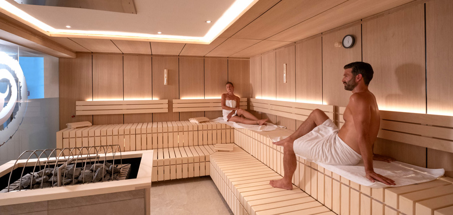 Sich einfach fallen lassen und die behagliche Wärme der Themensaunen unseres Adults only Spas auf drei Etagen spüren: