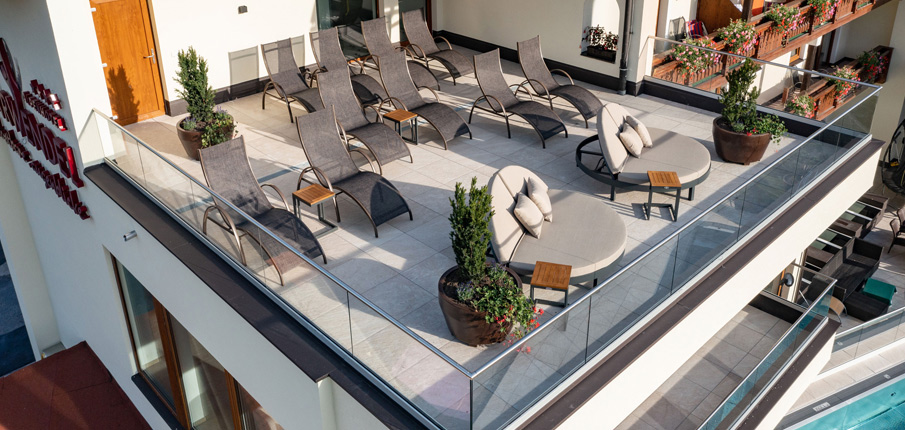 Auf dem Dach finden Sie unsere Outdoor-Skyterrasse.